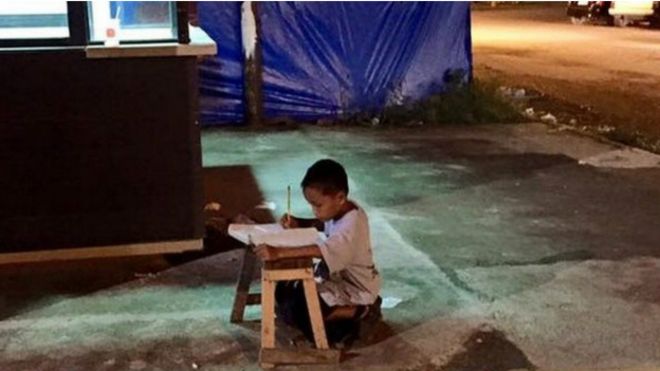 Mtoto aliyepigwa picha akidurusu usiku nje ya mkahawa wa McDonald huko Ufilipino amevutia hisia kali ulimwenguni kote kwa ari yake ya kupata elimu.